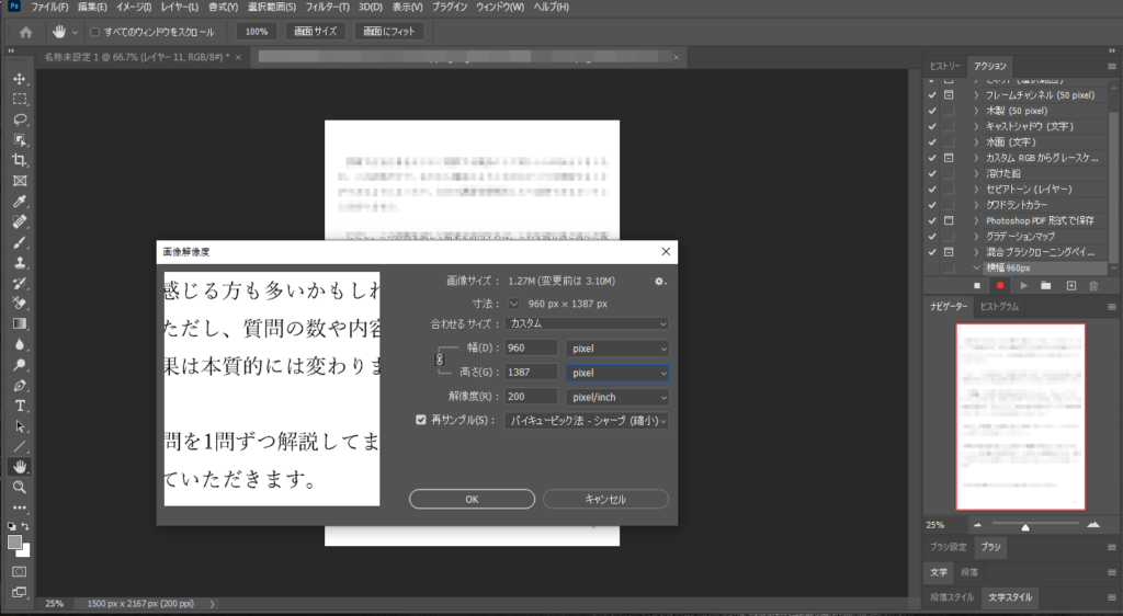 次に解像度を縮小し任意の横幅(今回は960px)に変換します。