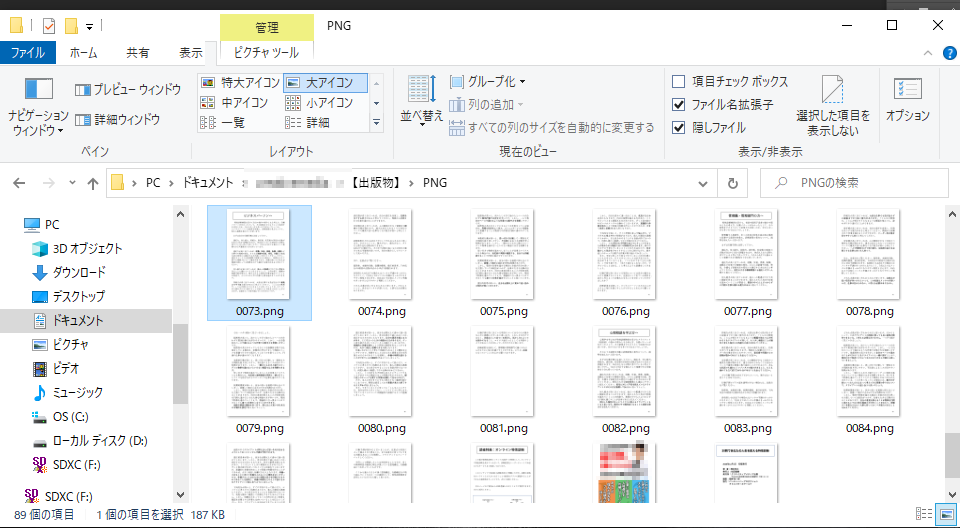 ここまでで、PDFが個別のPNGファイルで書出されました。
